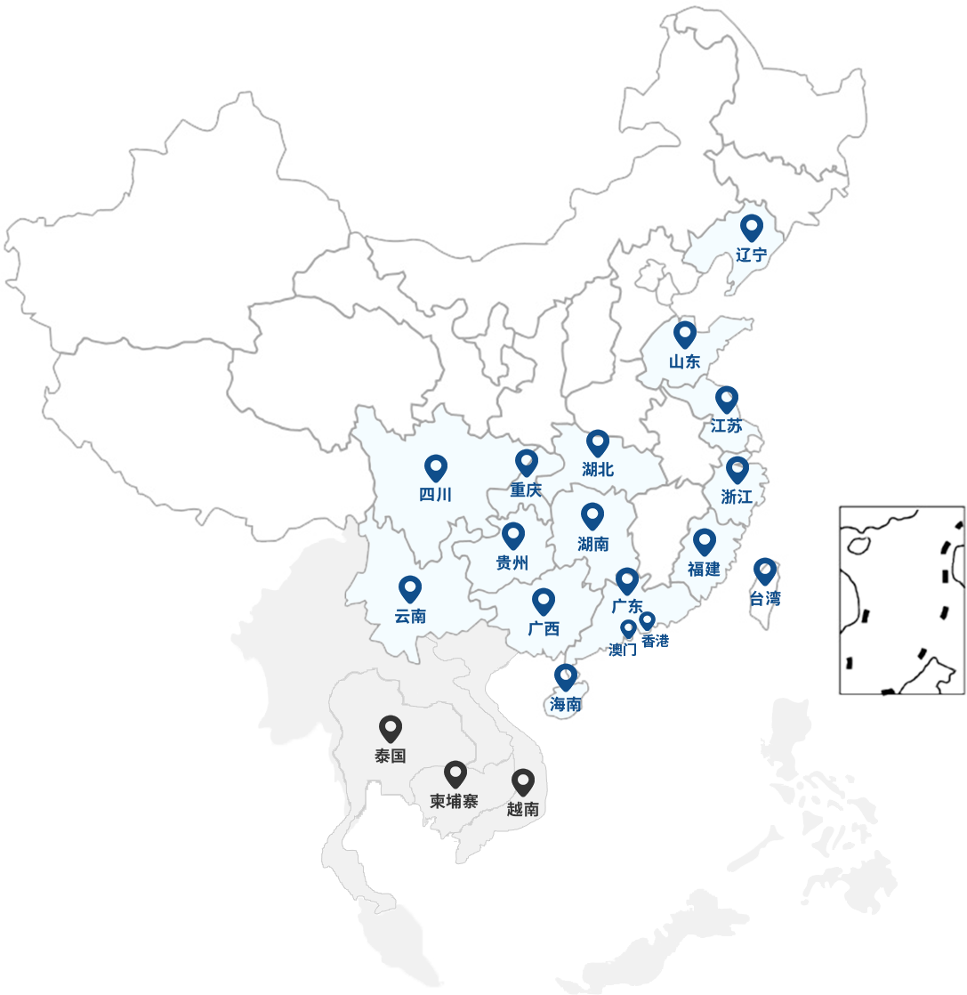 銷售網(wǎng)點主要集中在華南、西南地區(qū),占據(jù)華南地區(qū)較大市場份額,并向華東、華北、港澳臺地區(qū)及海外市場拓展 。